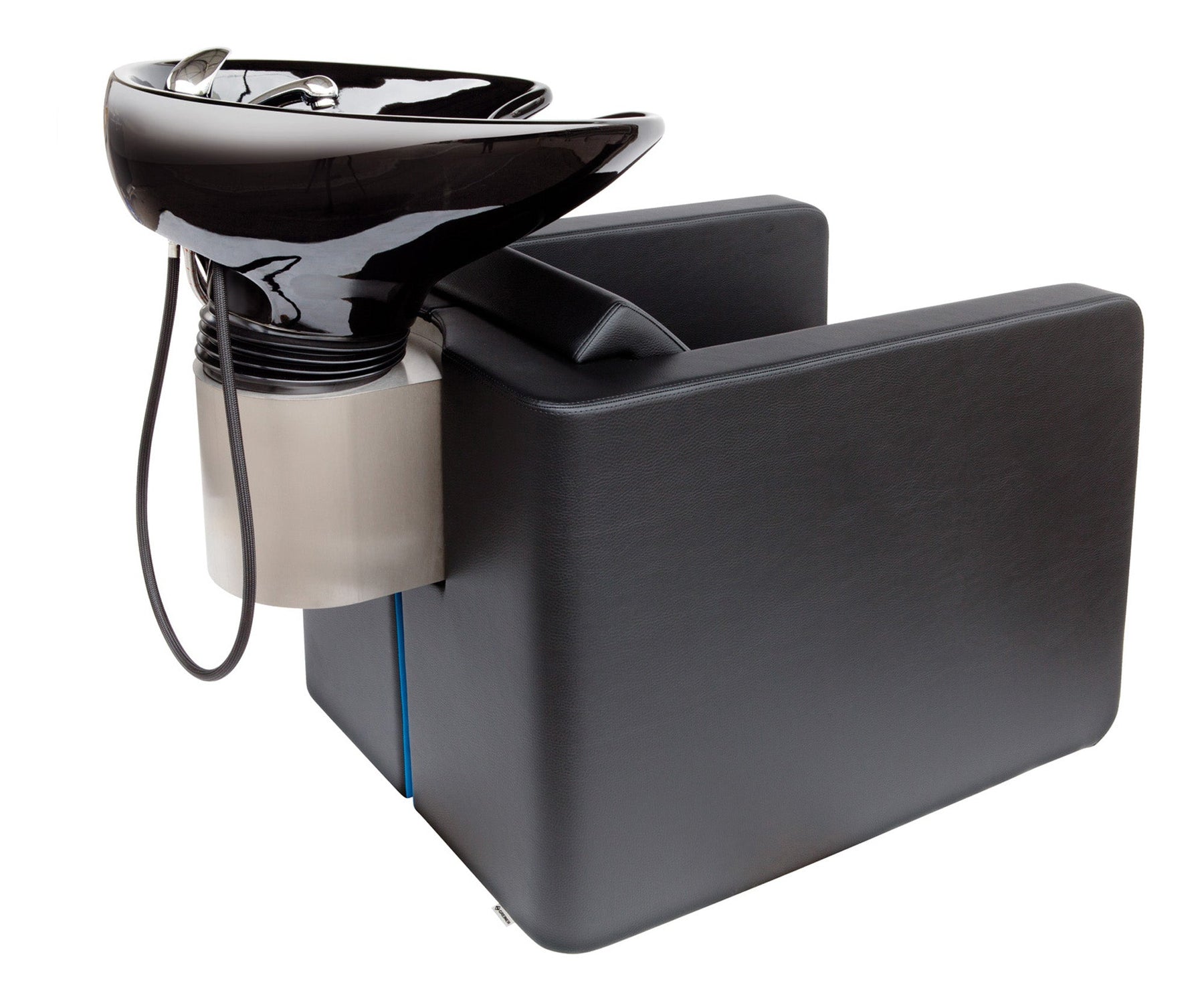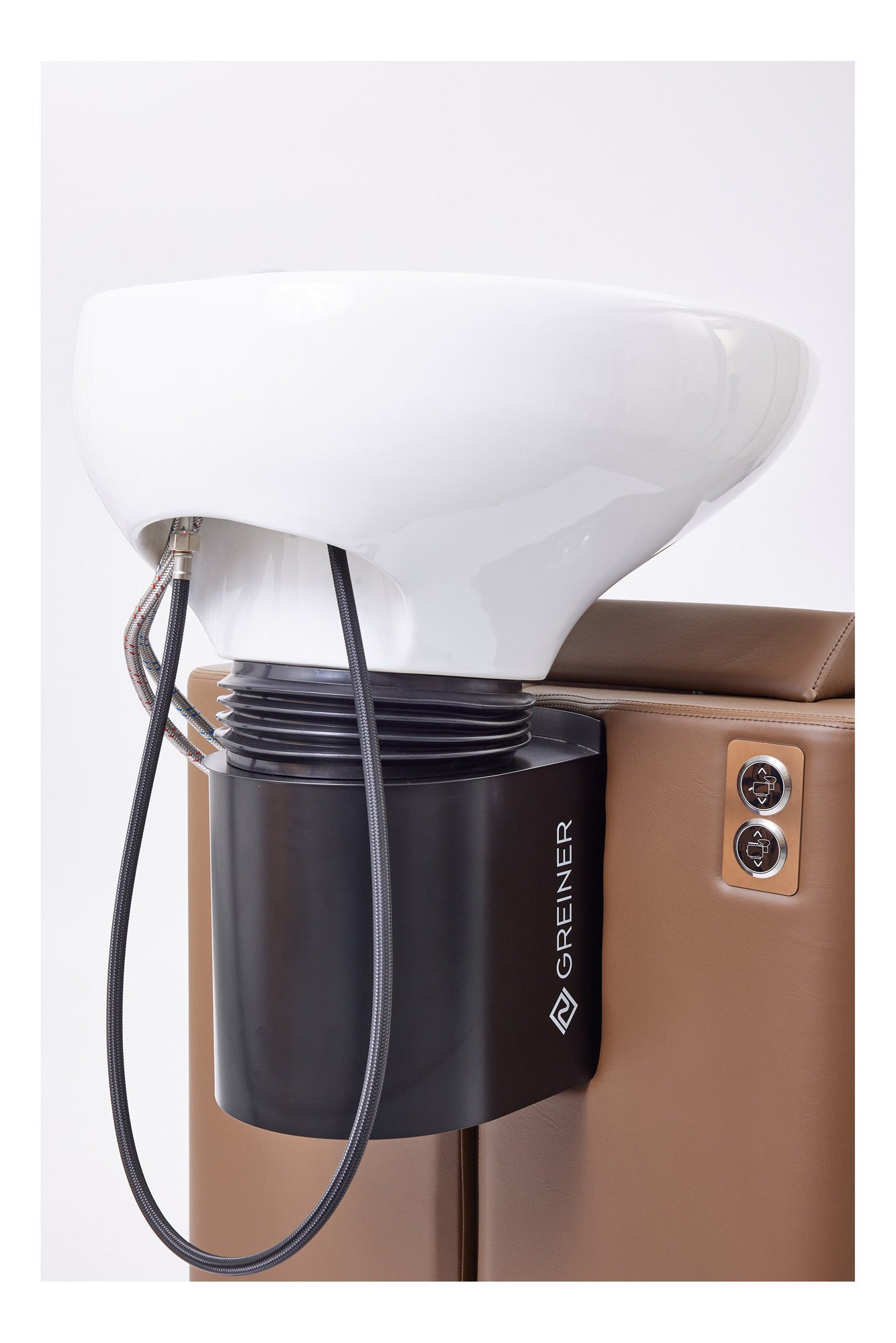 Neues Modell Metallsockel und Verkleidung unter Becken nur in schwarz erhältlich. Cosmolore 2 ist ein Zeuge unserer Zeit. Seine kompakte Präsenz besitzt eleganten Charme und klare Schönheit mit viel Sinn für schöne und hochwertige Details, wie die Beckenträgerabdeckung aus Edelstahl, oder auch das Designelement "Fuge" an der Rückseite der Anlage, welches in Kontrastfarbe gepolstert werden kann. Eine Massageeinrichtung im Rücken, sowie ein elektrisch schwenkbares Beinpolster sind optional vorgesehen. Der Waschsessel cosmolore hat wahlweise ein schwarzes oder weißes Becken. Ob einzeln oder als Bank, cosmolore 2 wird mit Sicherheit ein Blickfang in Ihrem Salon.