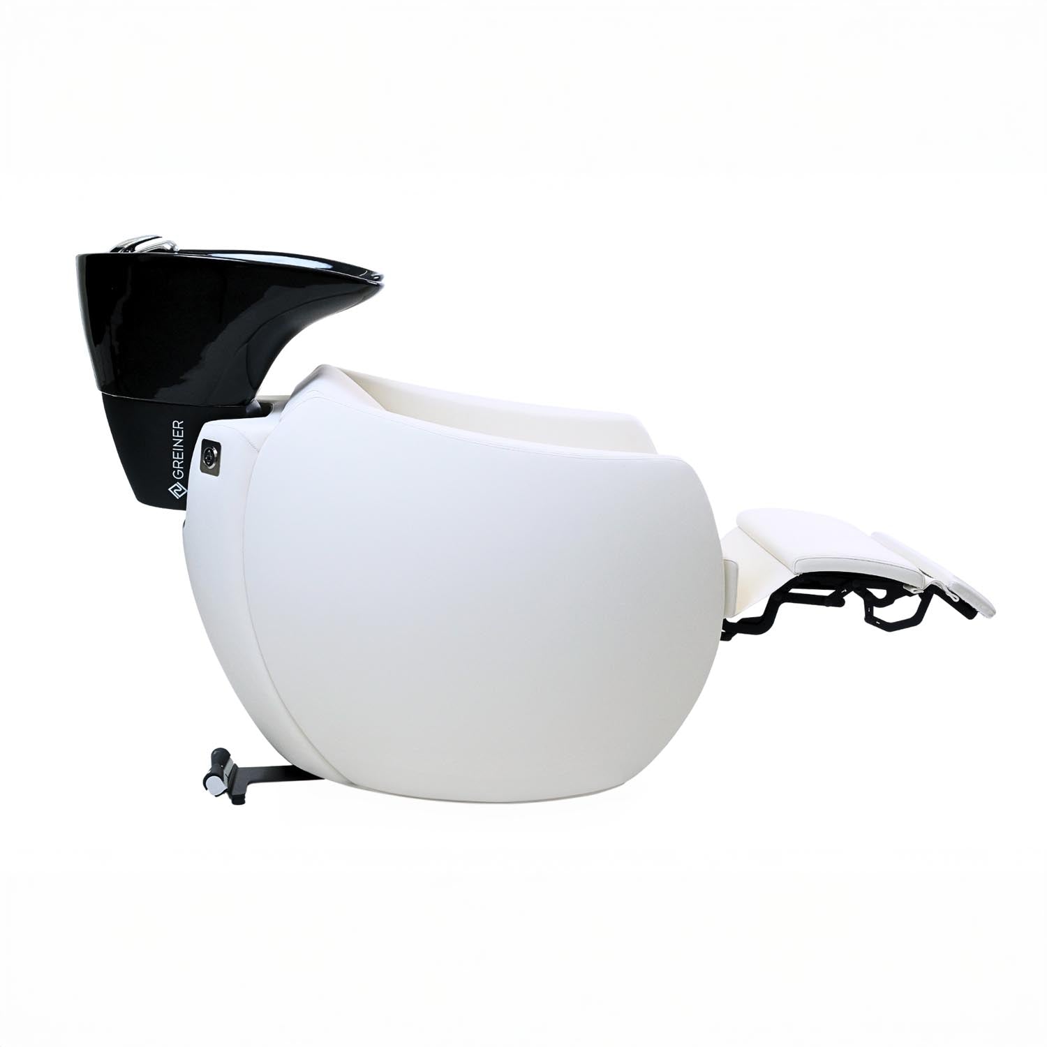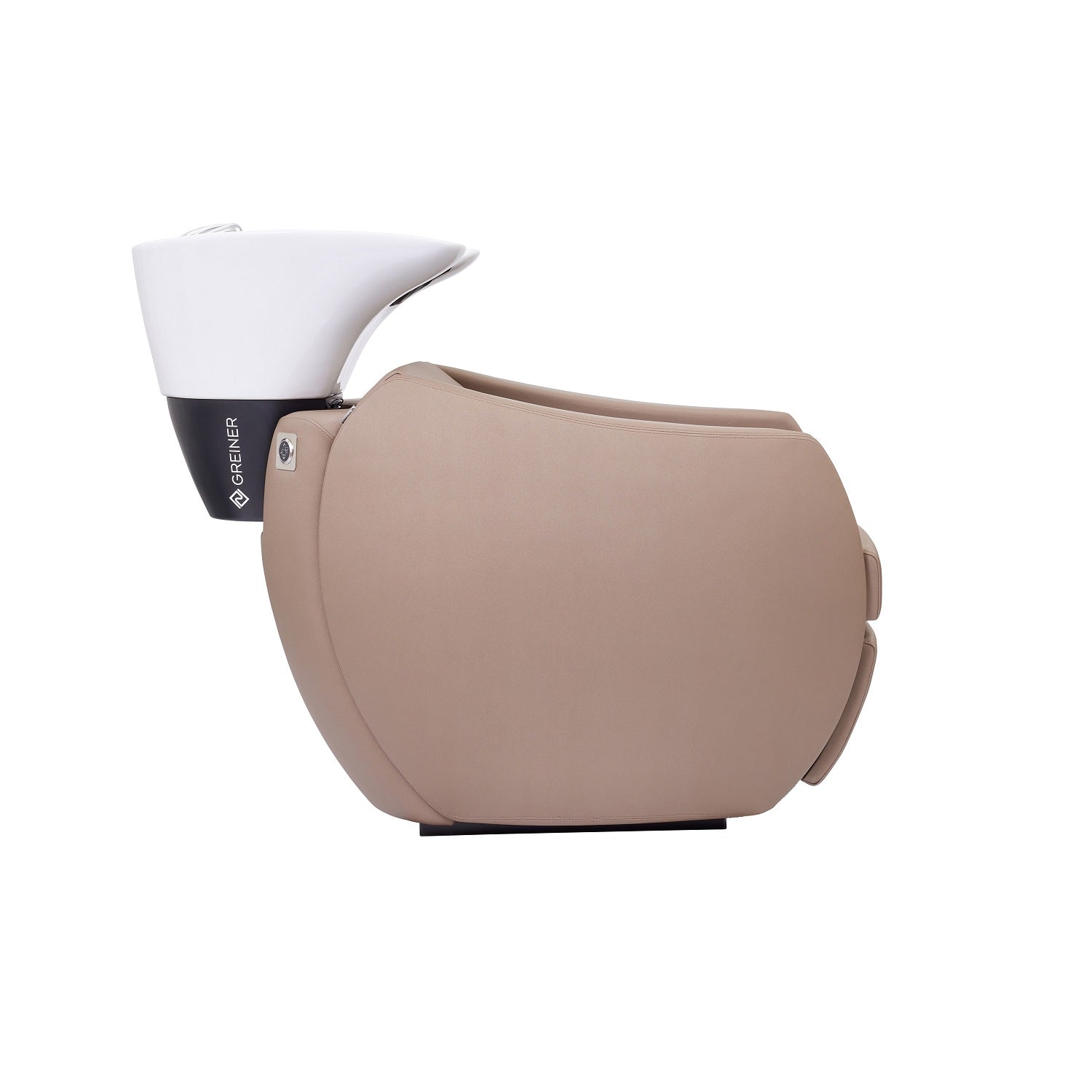 tondolore der neue GREINER-Waschsessel begeistert. Konzentrische Radien greifen harmonisch und dynamisch ineinander - Korpus und Becken, weich und hart verschmelzen zu einer Einheit. tondolore gibt es mit "Wellness- Ausstattung": Mit elektrisch verstellbarem Beinpolster und/oder Massageeinrichtung in der Rückenlehne. Das Becken ist wahlweise schwarz oder weiß. Das Sitz / Rückenpolster lässt sich mit einem Handgriff komplett abnehmen, so dass der Innenraum mit Installation und Befestigungselementen der Waschanlage frei zugänglich ist. Jetzt auch als Höhenverstellbare Variante bei den Einzelsesseln verfügbar. Neue Innovation durch individuelle Anpassung an den Stylisten. Elektrische Höhenverstellung von bis zu 14 cm ermöglicht ergonomisches und abwechslungsreiches Arbeiten. Die Höhenverstellung ist bequem über ein Fuß Panel steuerbar. Auf Anfrage auch als Bluetooth Variante erhältlich.