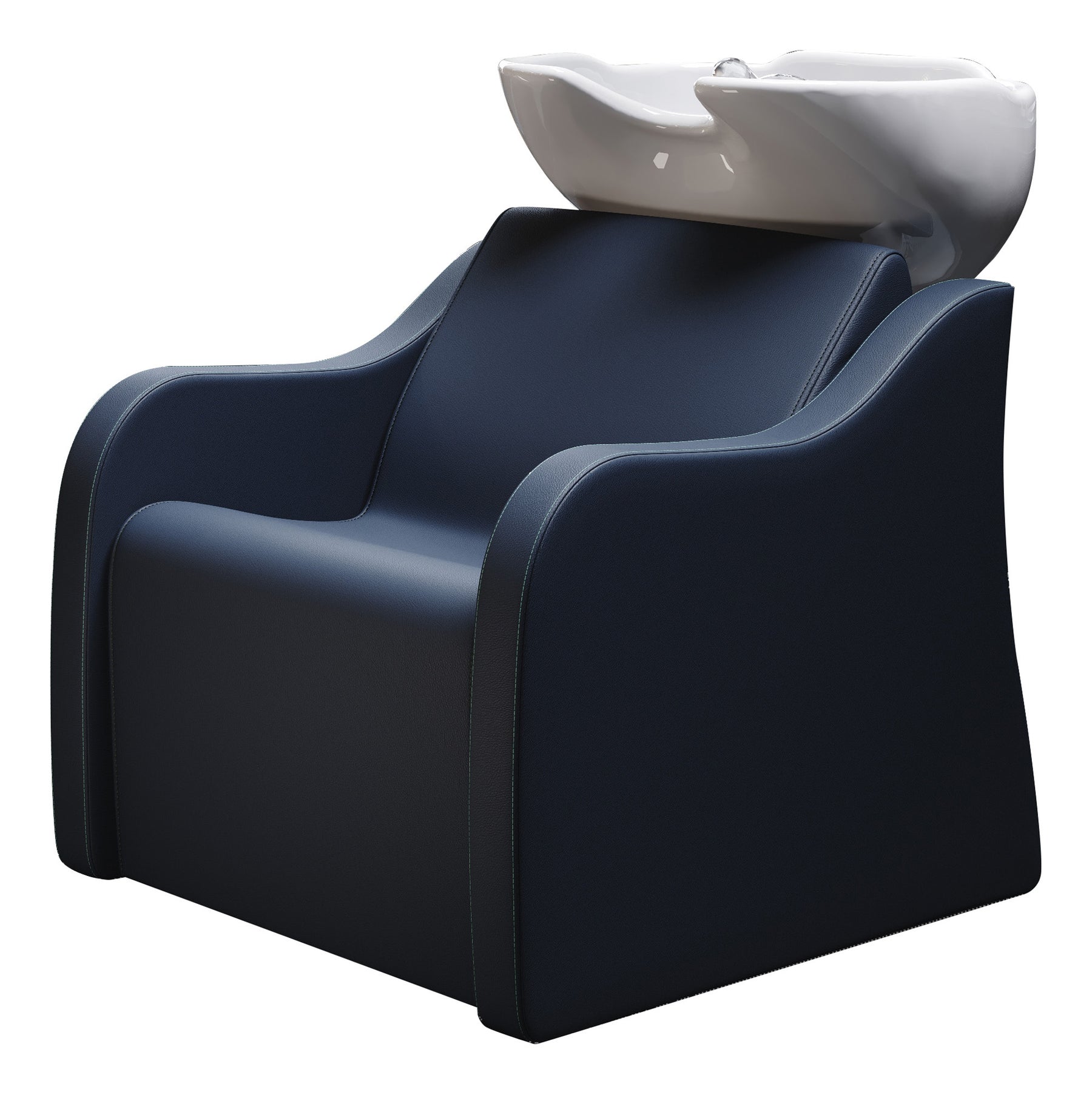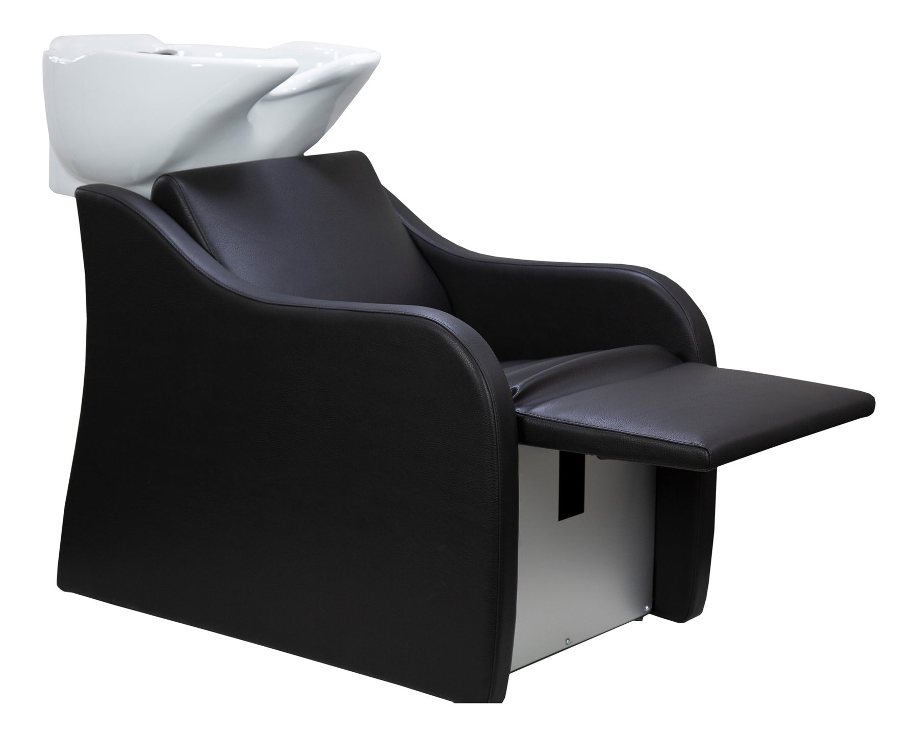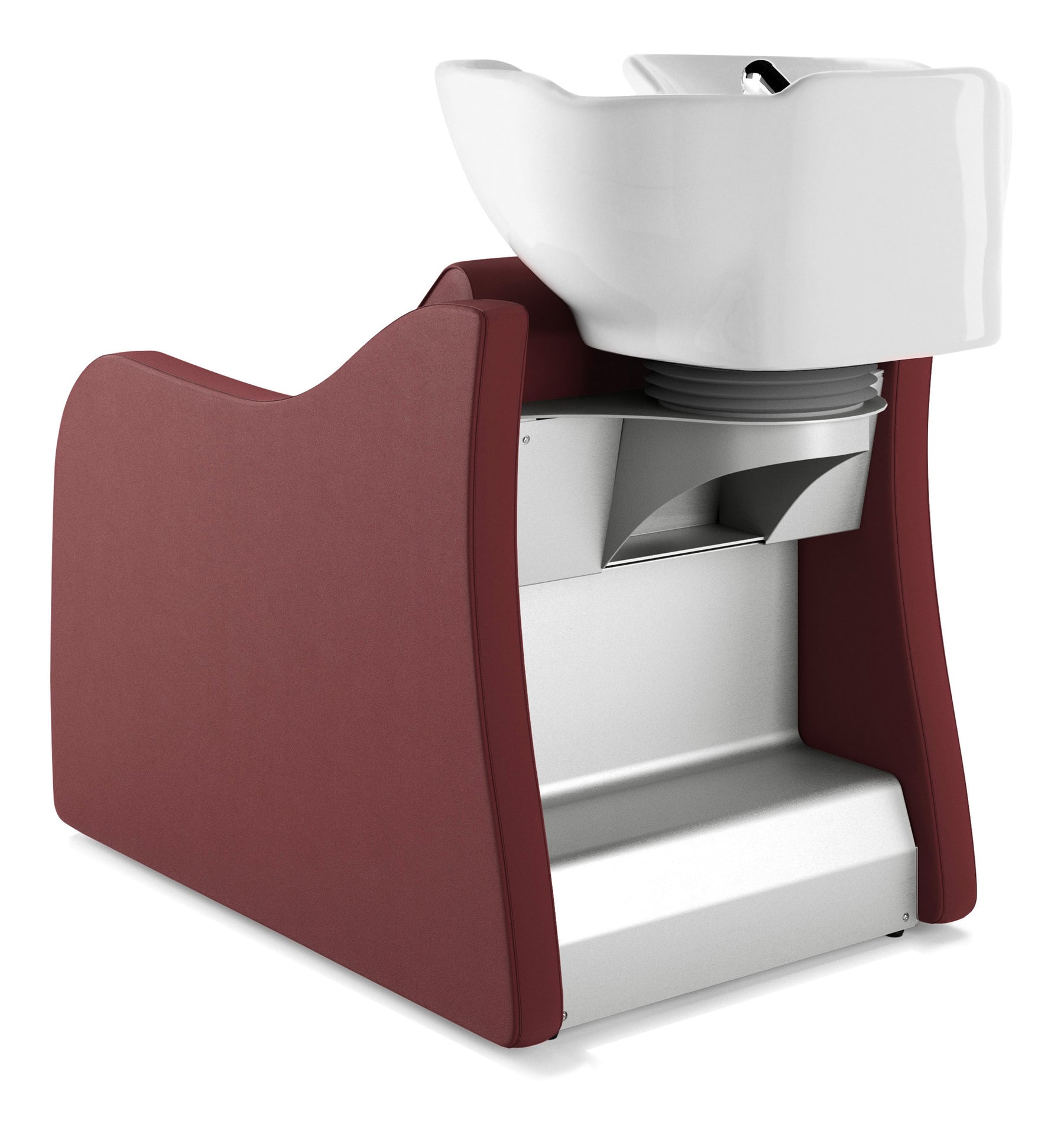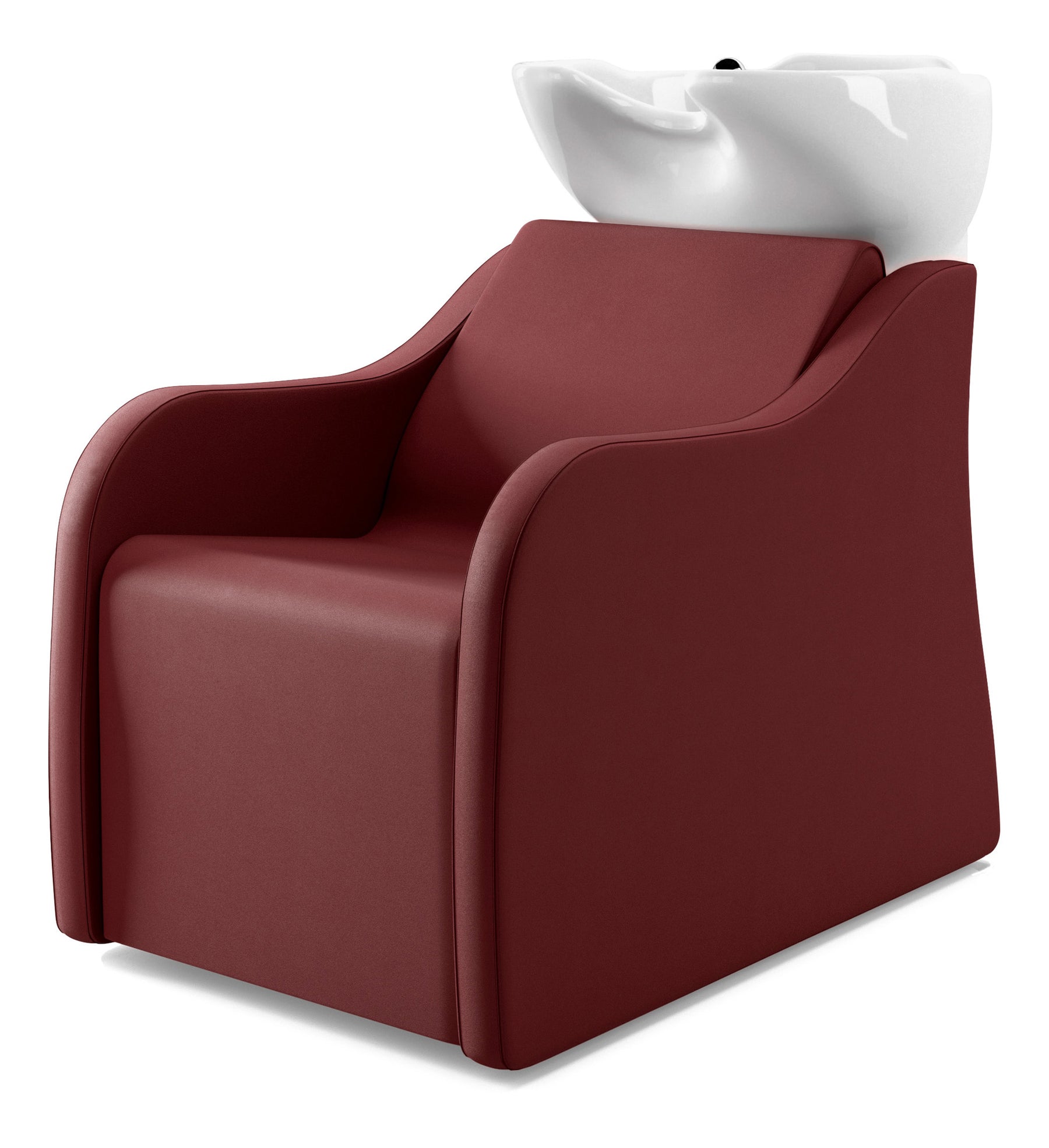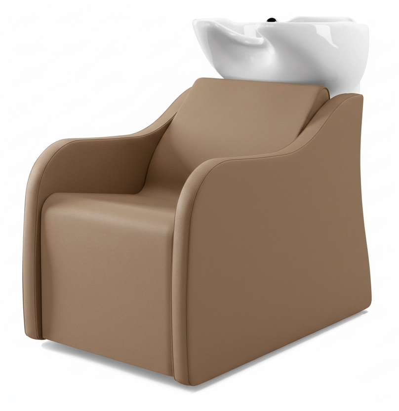 Sie ist aus hochwertigen Materialien gefertigt, das Profil der Polsterung bietet ergonomischen Rückenhalt. Das tiefe Becken ist für Kundschaft und Salonmitarbeiter besonders komfortabel. An der Rückseite ist eine praktische integrierte Ablage vorgesehen.